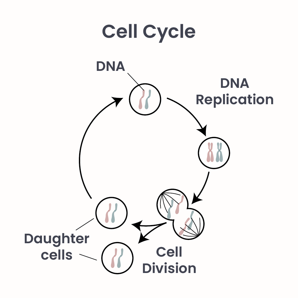 Just like chefs following detailed recipes to create rich sauces and intricate dishes, our cells have their own recipe book, or instruction manual – their DNA. Our DNA is a mix of our biological parents DNA. Mixing of DNA occurs when an egg and a sperm, from our biological parents, fuse. Thanks to a cell’s DNA, it knows when to grow, and what to do next. In order to produce new cells and form all the parts of our body, our cells divide to produce two new cells (Figure 1). Before dividing, cells replicate their DNA and grow large. Cells can then become neurons and grow long protruding arms, or axons, to reach their target; become skin cells and have high levels of keratin; or, form the heart and beat in rhythm with surrounding cells. Some cells will migrate through our bodies to find their homes. Other cells may only be required for a short time. Cells may enter programmed cell death – a process termed ‘apoptosis’ – in order to make way for other cells. For example, apoptosis is crucial during embryonic development, as our fingers and toes begin to form while still connected via webbed skin1. Through apoptosis the connecting web of cells is eliminated, allowing individual digits to form. Adherence to these intricate and complex processes allows for our proper formation and good health, resulting in a human body of roughly thirty trillion cells2.