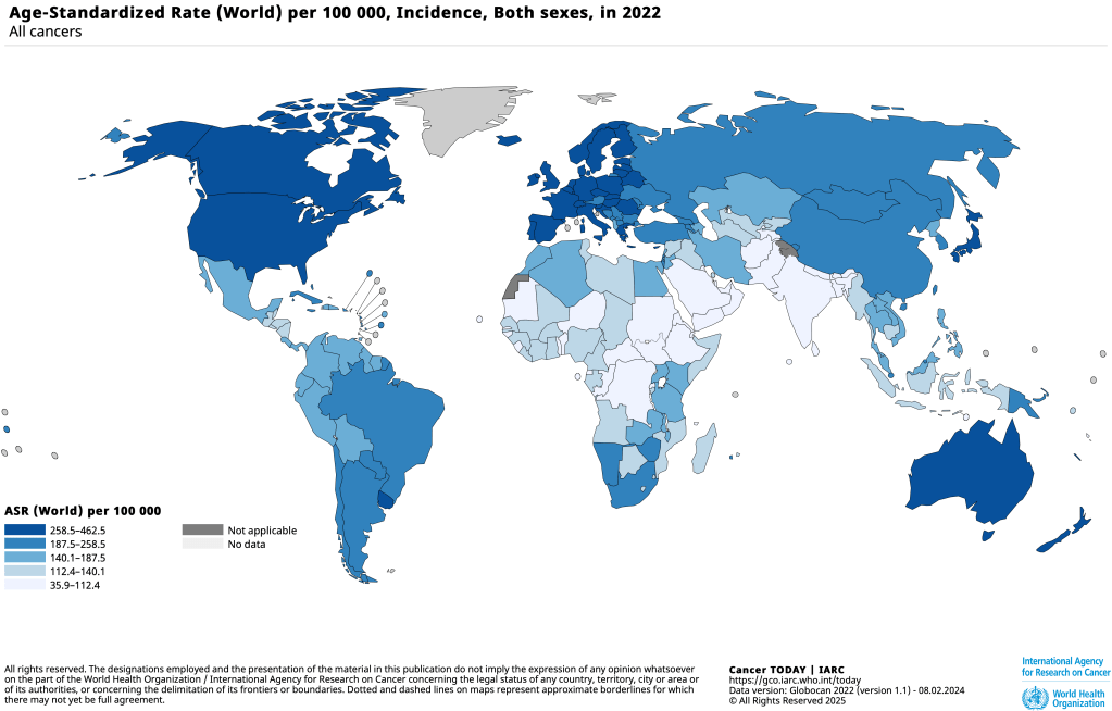 - Lower-income countries tend to report lower cancer incidence rates, but this does not necessarily mean a lower burden—it could indicate underdiagnosis and limited healthcare access.
